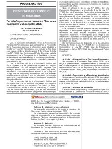 Decreto Supremo que convoca a Elecciones Regionales y Municipales 2026